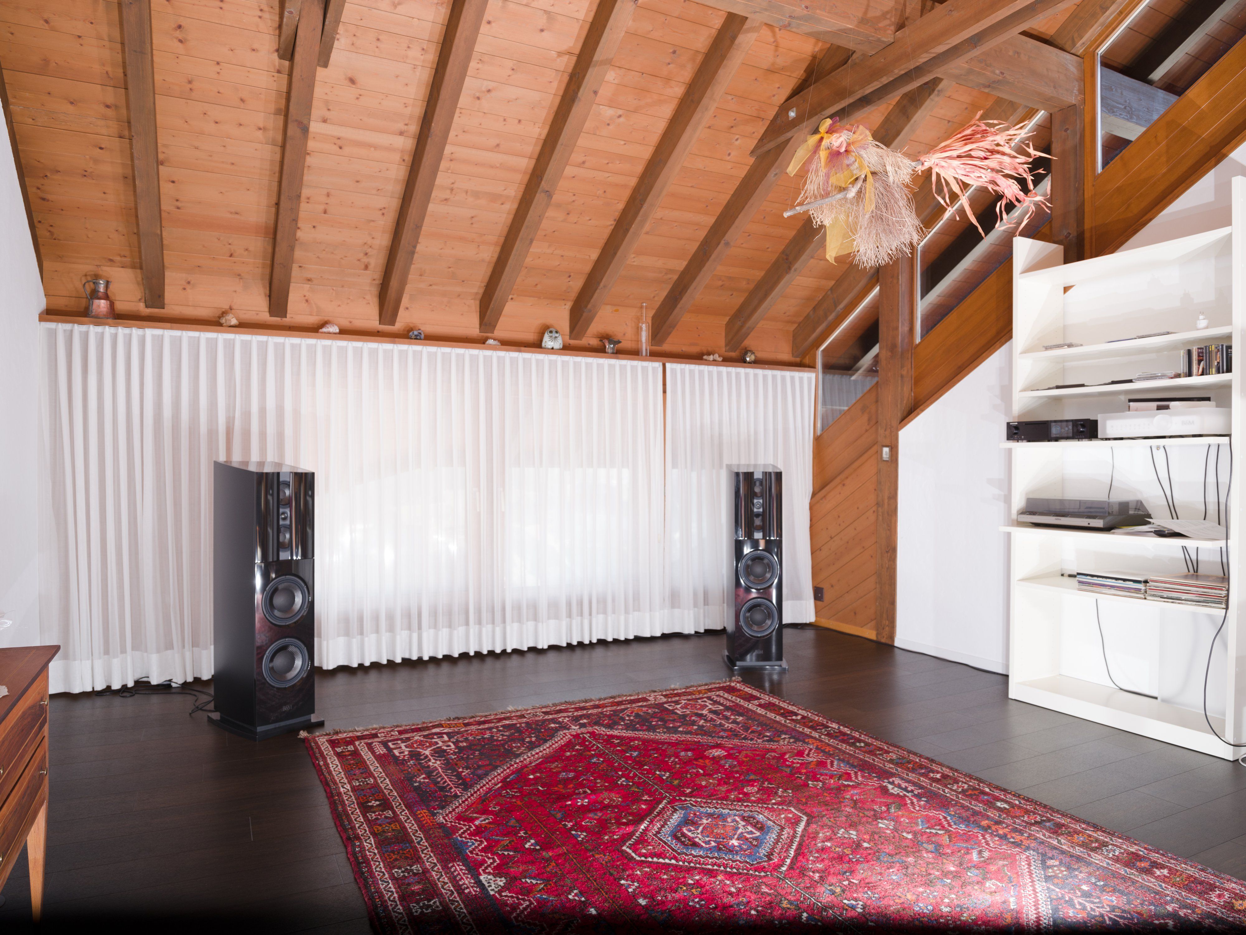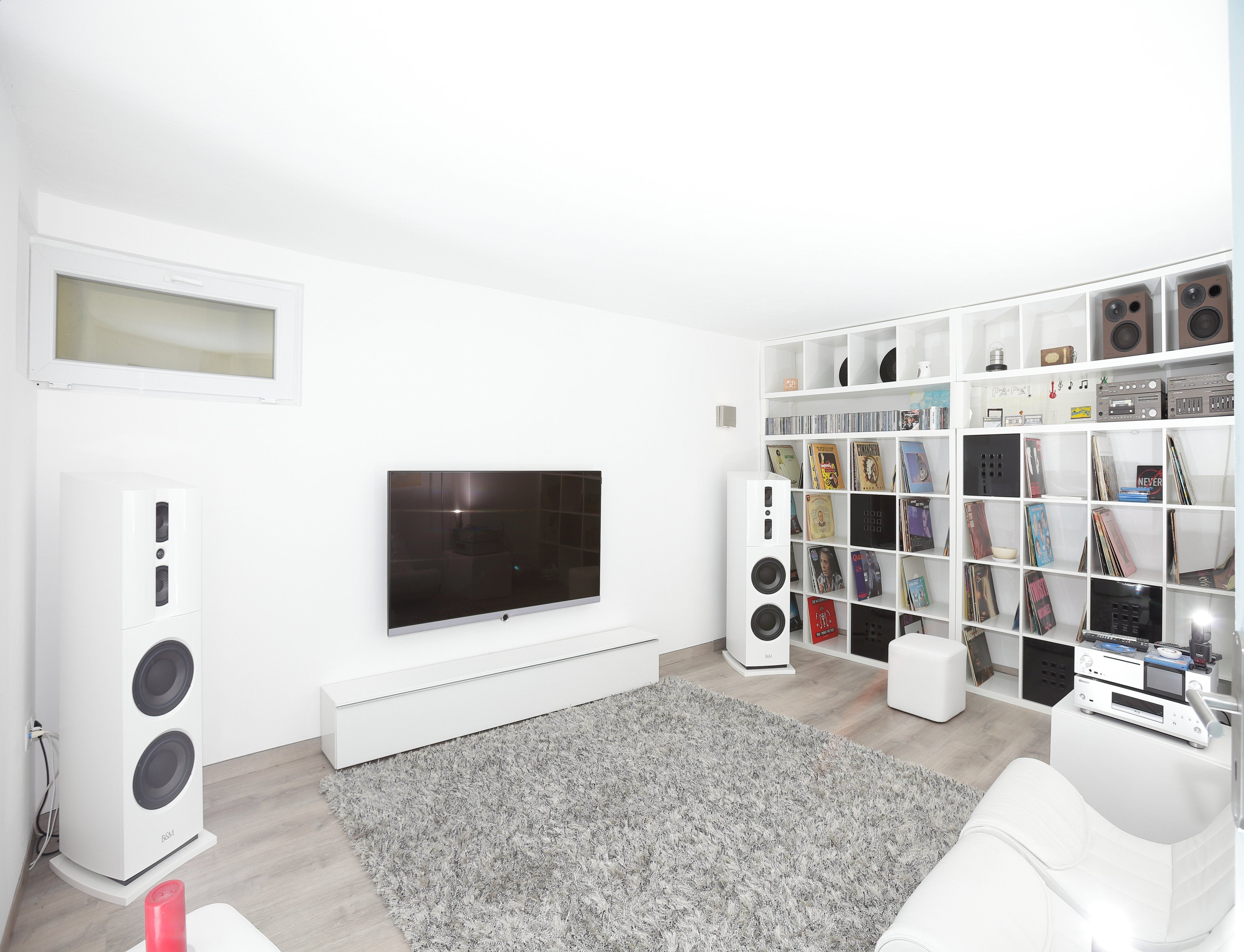 Auch hier handelt es sich um eine Wandaufstellung. Die Lautsprecher werden im Stereobetrieb von unserer BM ICE802 betrieben. Die beide BM Line 15 stehen etwa 3,00m auseinander, der Hörabstand beträgt 3,50m.