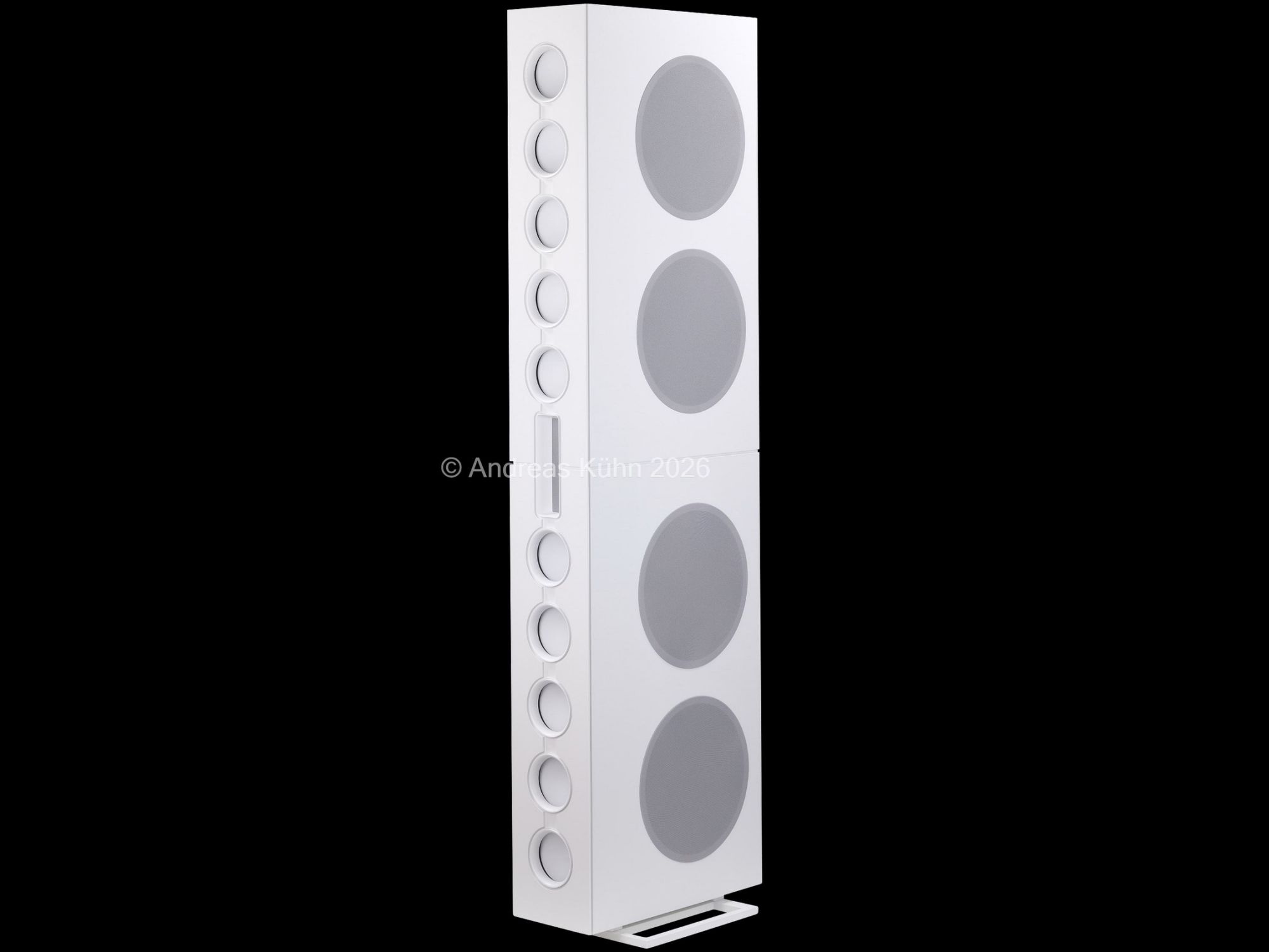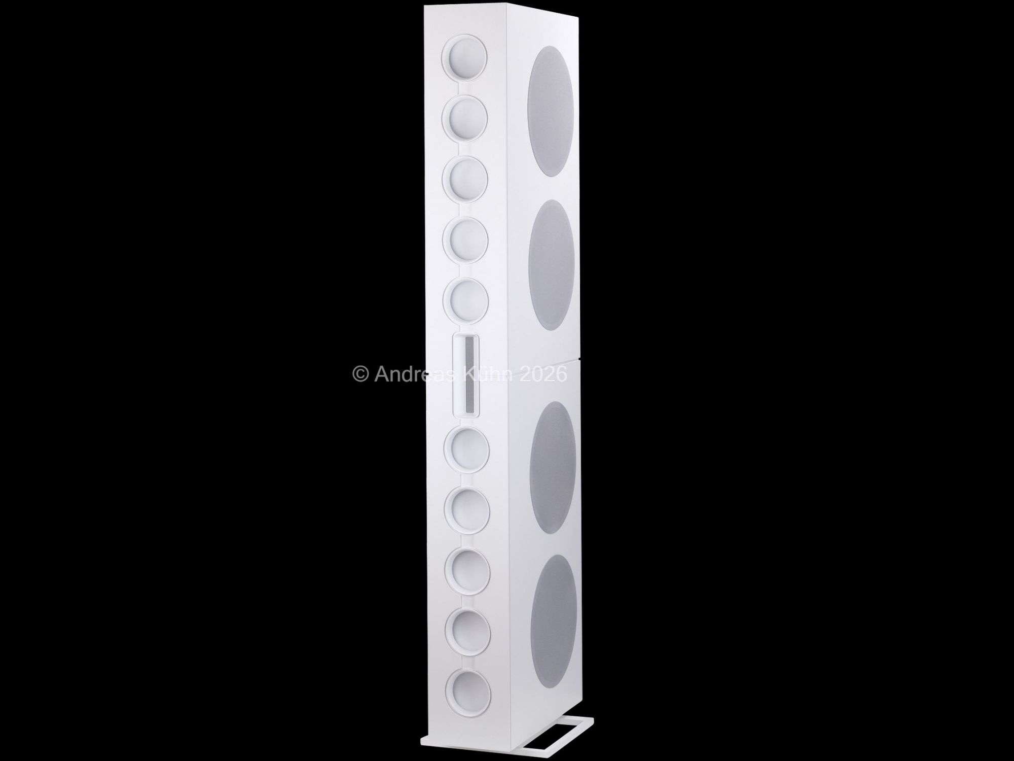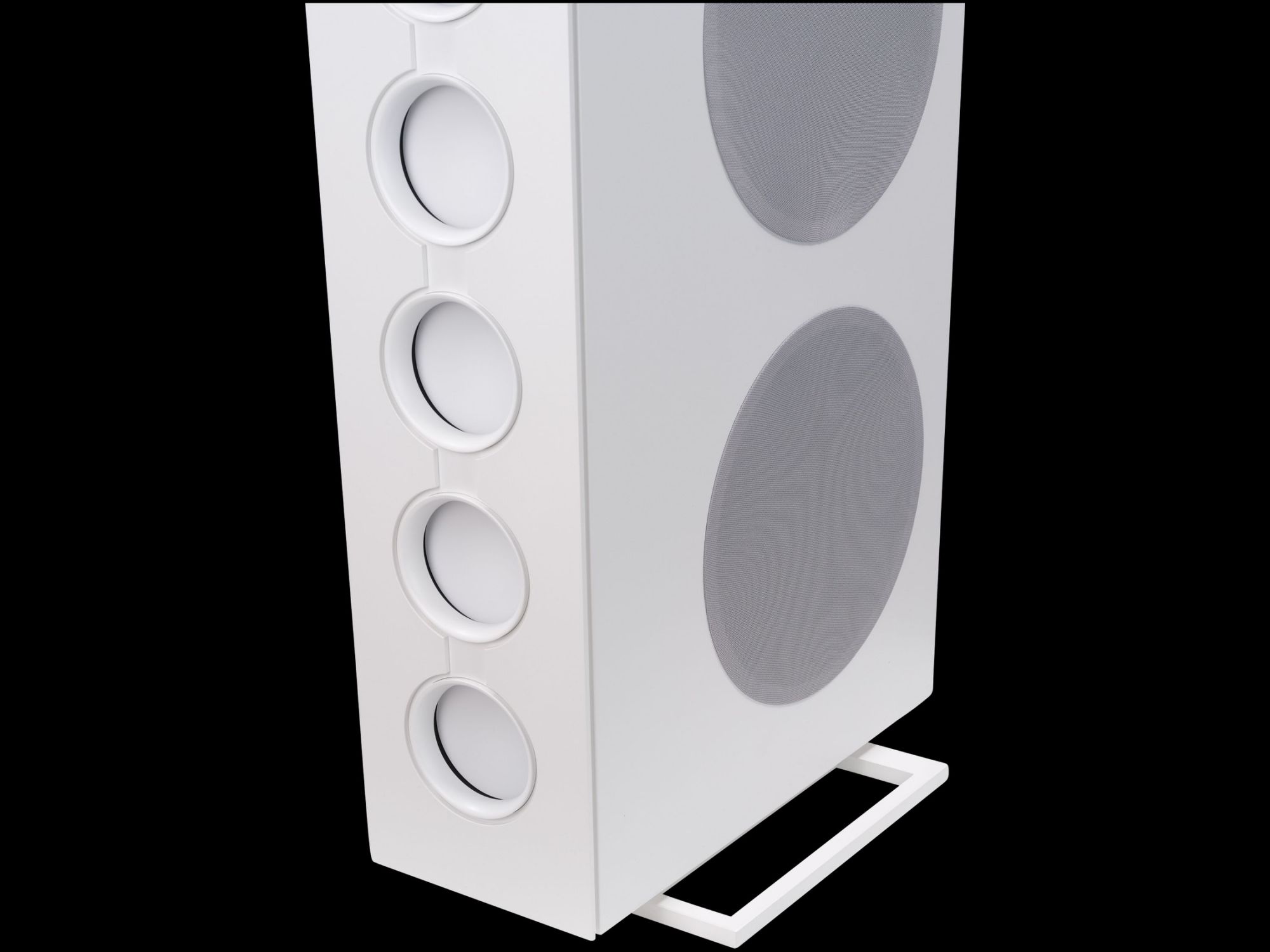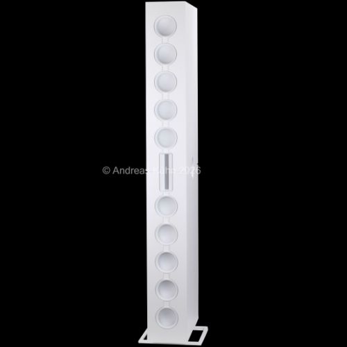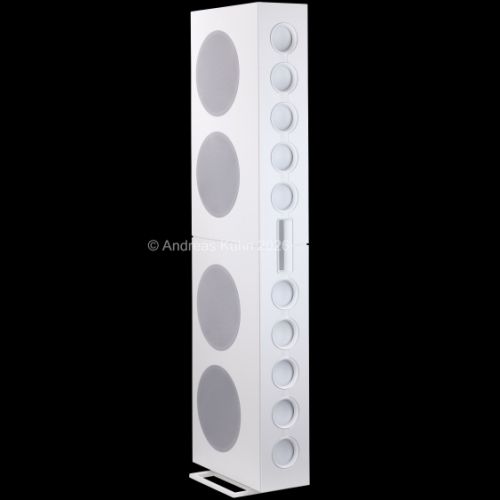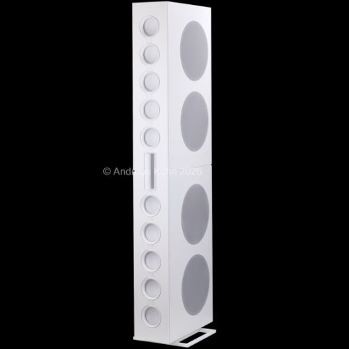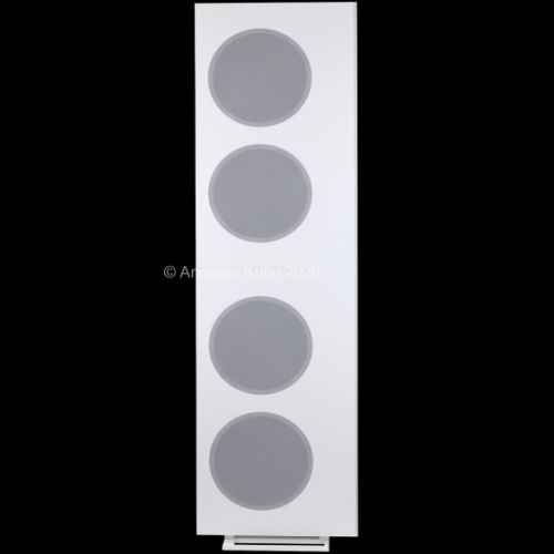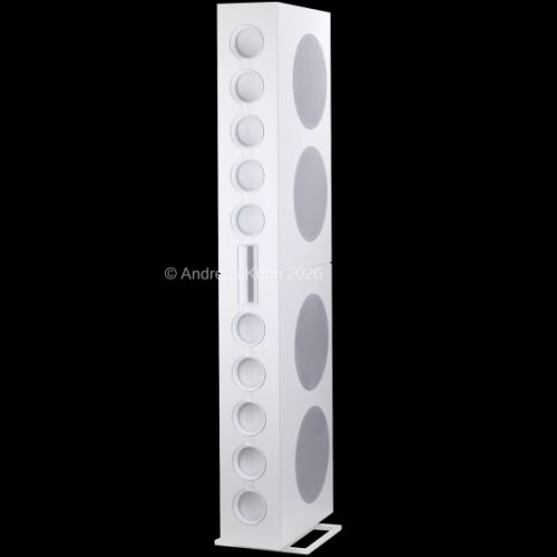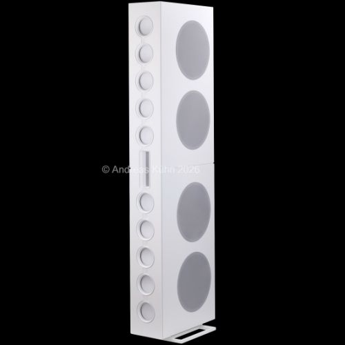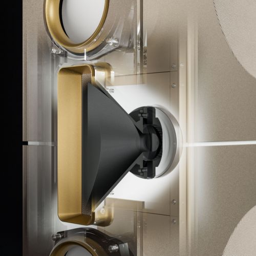 Der Bassbereich wird von mehreren großformatigen, sensorgeregelten Tieftönern übernommen. Die integrierte Regelung überwacht permanent die tatsächliche Membranbewegung und korrigiert sie in Echtzeit. Dadurch bleibt der Bass nicht nur tiefreichend und kraftvoll, sondern vor allem präzise und frei von Aufdickungen, selbst bei hohen Pegeln oder geringer Lautstärke.