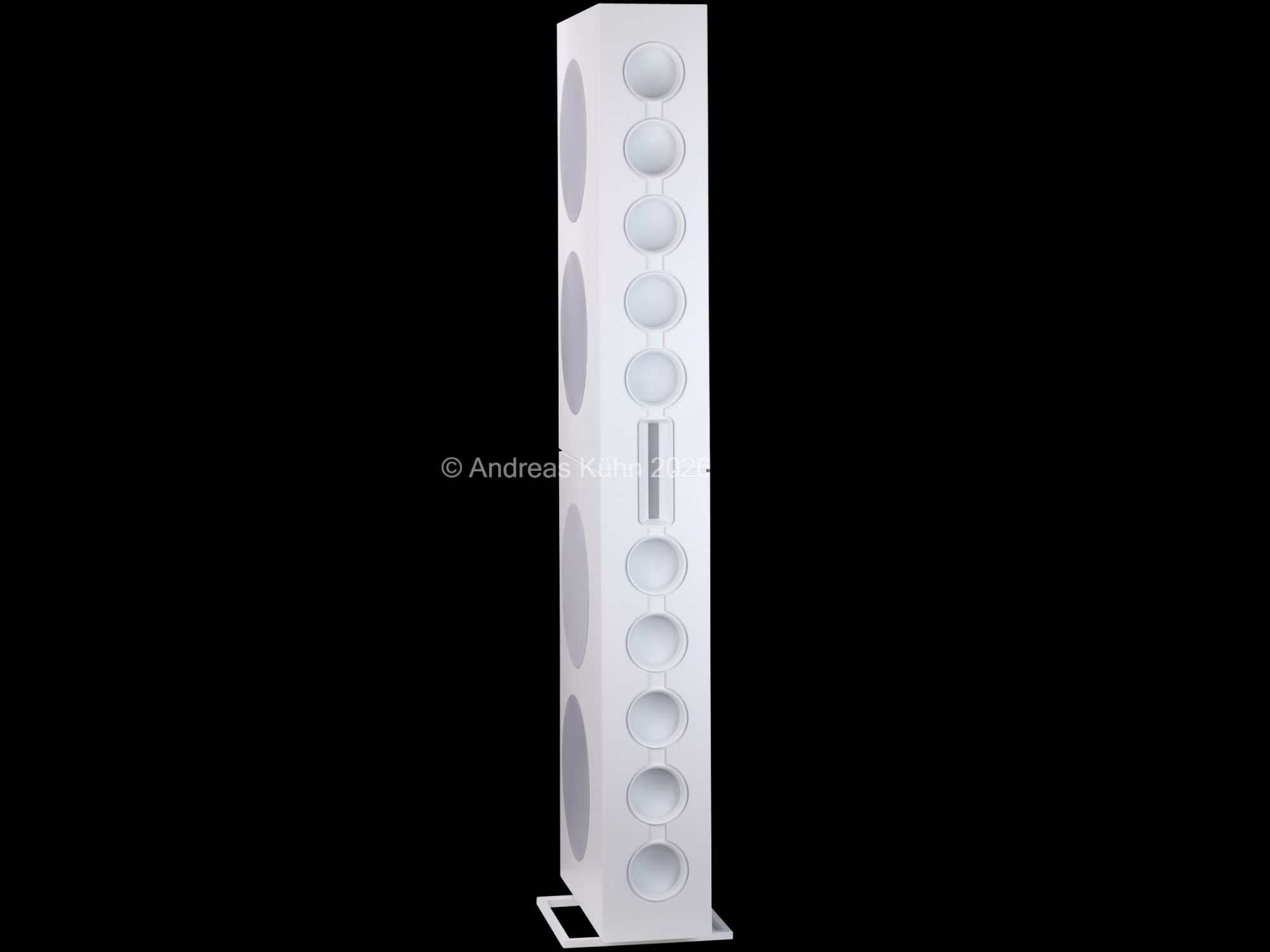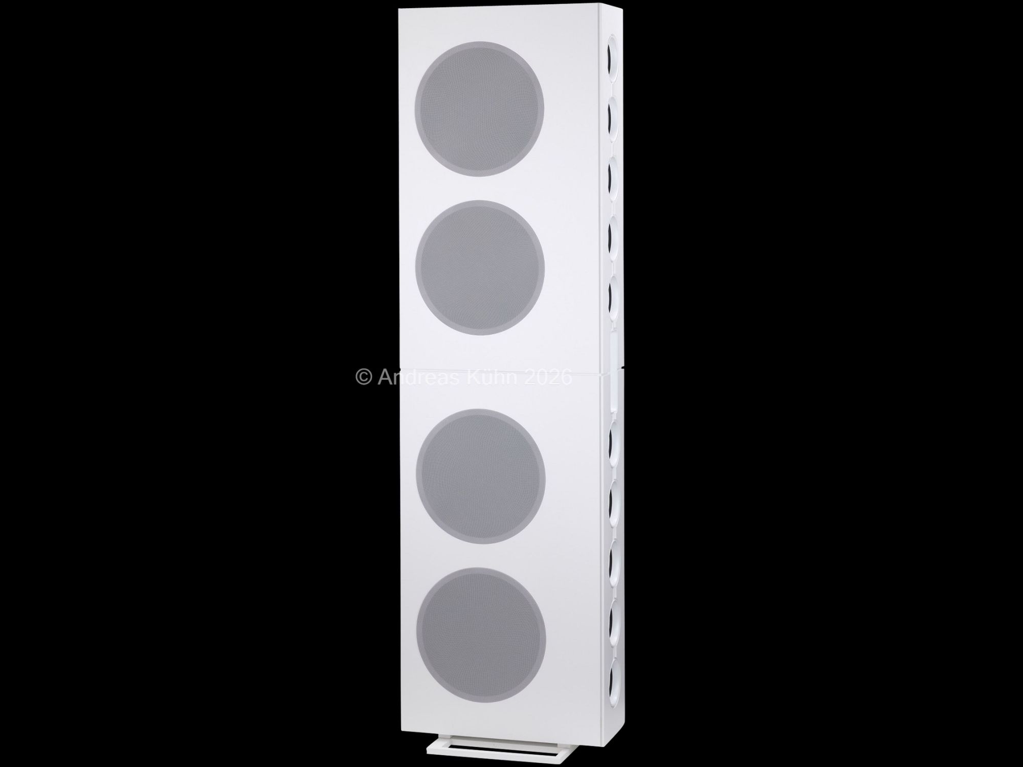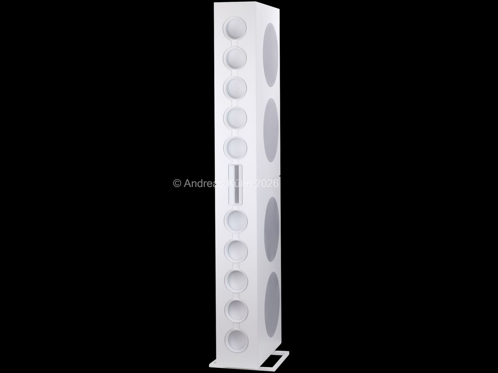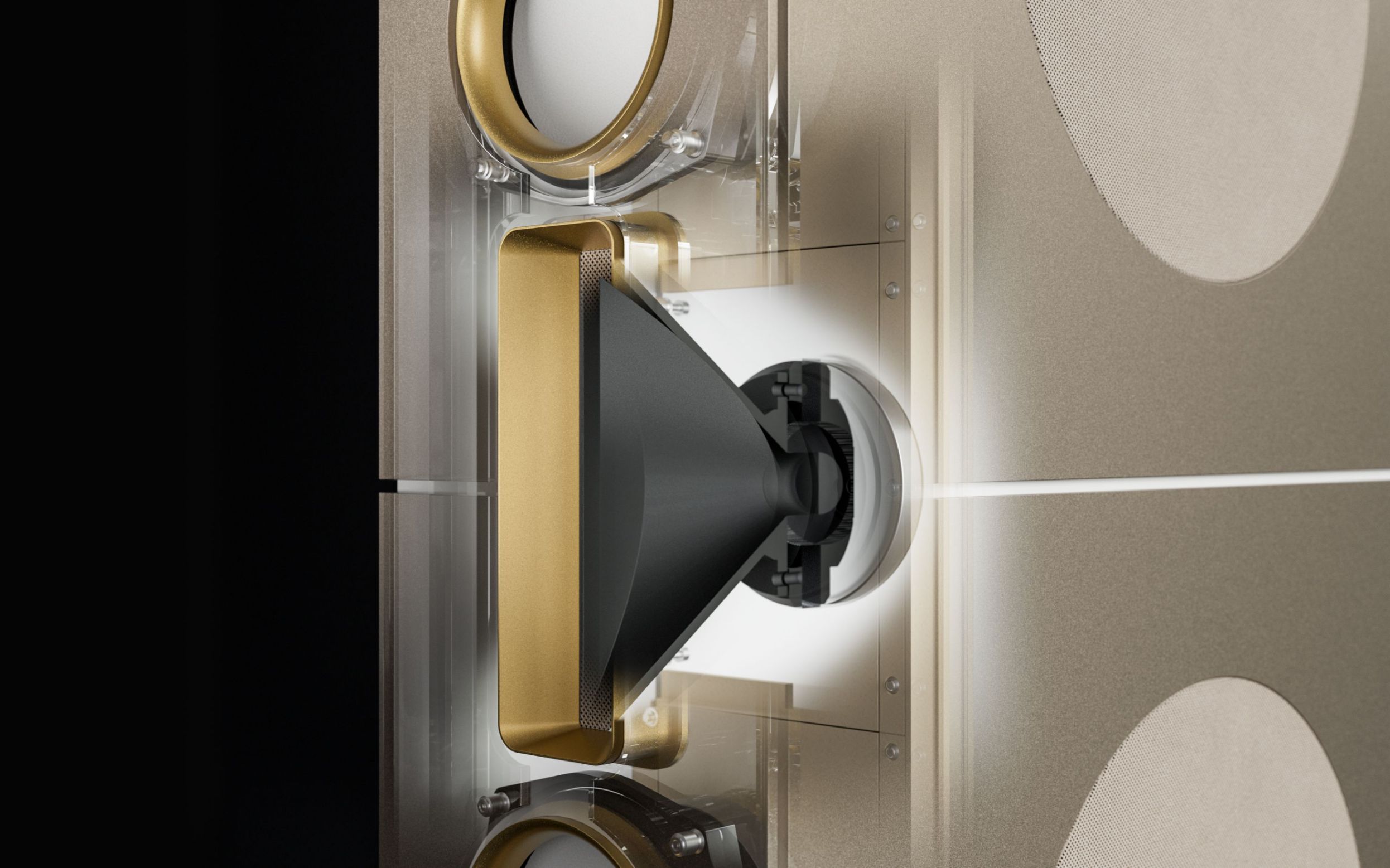 Der Bassbereich wird von mehreren großformatigen, sensorgeregelten Tieftönern übernommen. Die integrierte Regelung überwacht permanent die tatsächliche Membranbewegung und korrigiert sie in Echtzeit. Dadurch bleibt der Bass nicht nur tiefreichend und kraftvoll, sondern vor allem präzise und frei von Aufdickungen, selbst bei hohen Pegeln oder geringer Lautstärke.