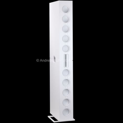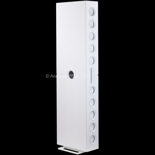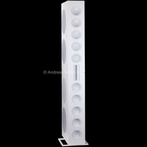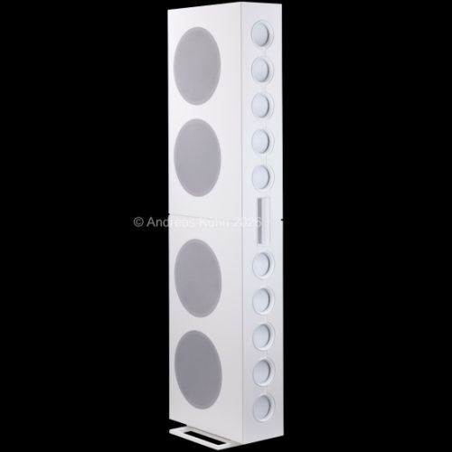Die Abstrahlcharakteristik des patentierten Fraunhofer-Zylinderwellenelements ermöglicht eine gezielte Ausrichtung des Schalls auf den Hörer, ohne übermäßige Raumreflexionen und mit einer bemerkenswert gleichmäßigen Verteilung im Hörfeld. Dadurch gelingt eine Klangbühne, die nicht nur in der Mitte, sondern auch seitlich ihre homogene Wirkung entfaltet.