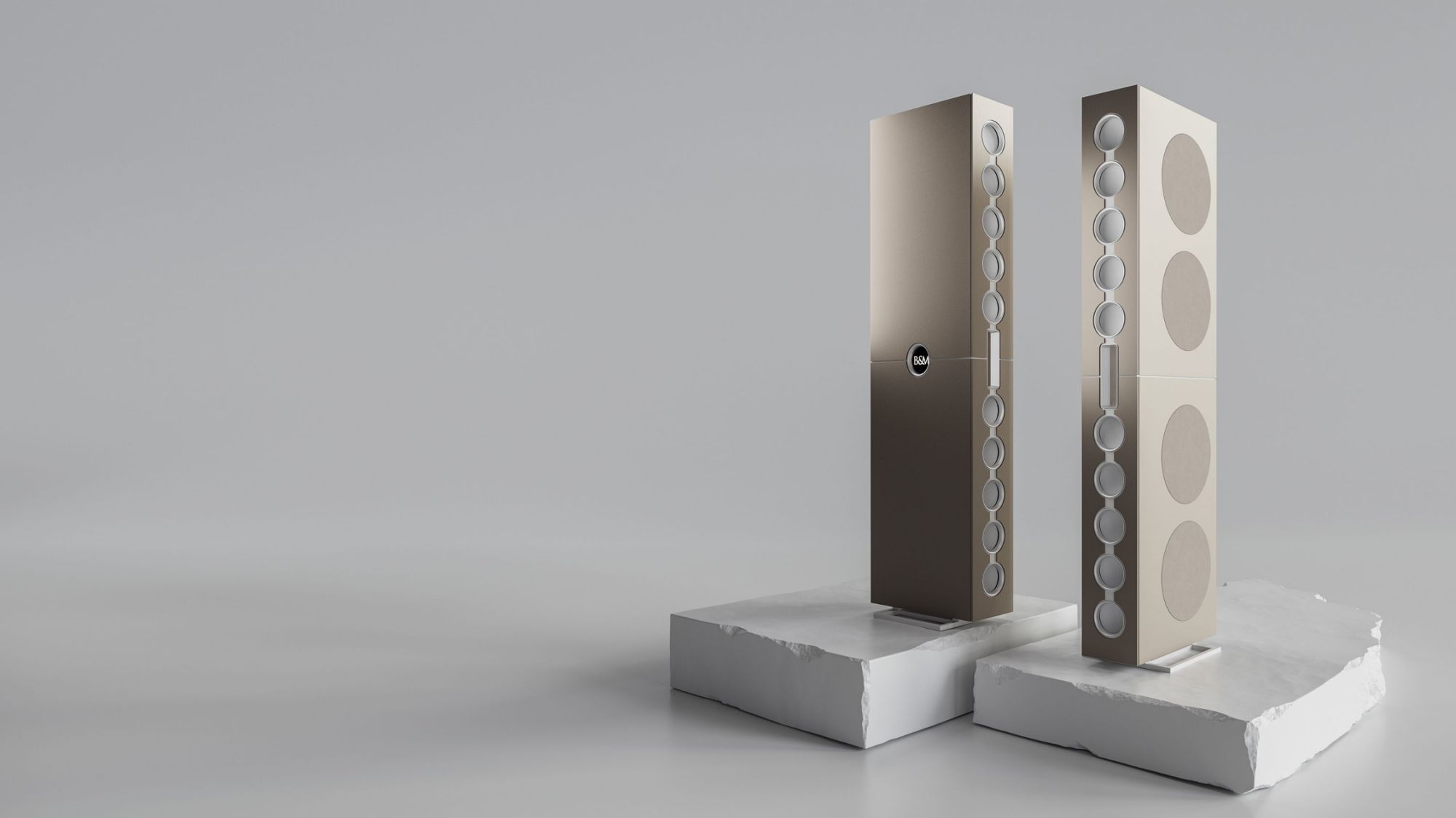 Die Bespoke-Variante eröffnet einen deutlich erweiterten Gestaltungsspielraum. Hier kann der Kunde die wichtigsten sichtbaren Elemente des Lautsprechers individuell bestimmen: Grundgehäuse, Front- und Seitenflächen, Metallteile sowie Kalotten der Mitteltöner.