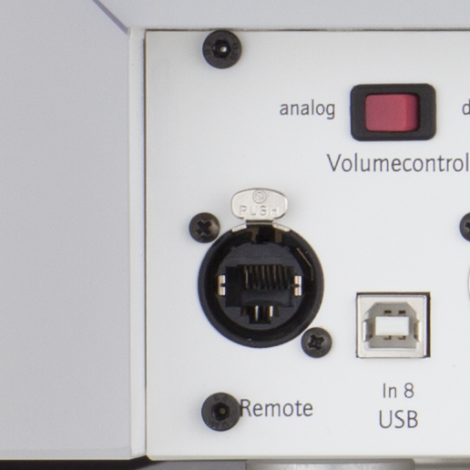 Möglich wird diese Ausstattung durch die 12 Bit Schrittweitenabtastung des Lautstärkereglers. Der Lautstärkeregler hat ein analoges "Feel and Touch"