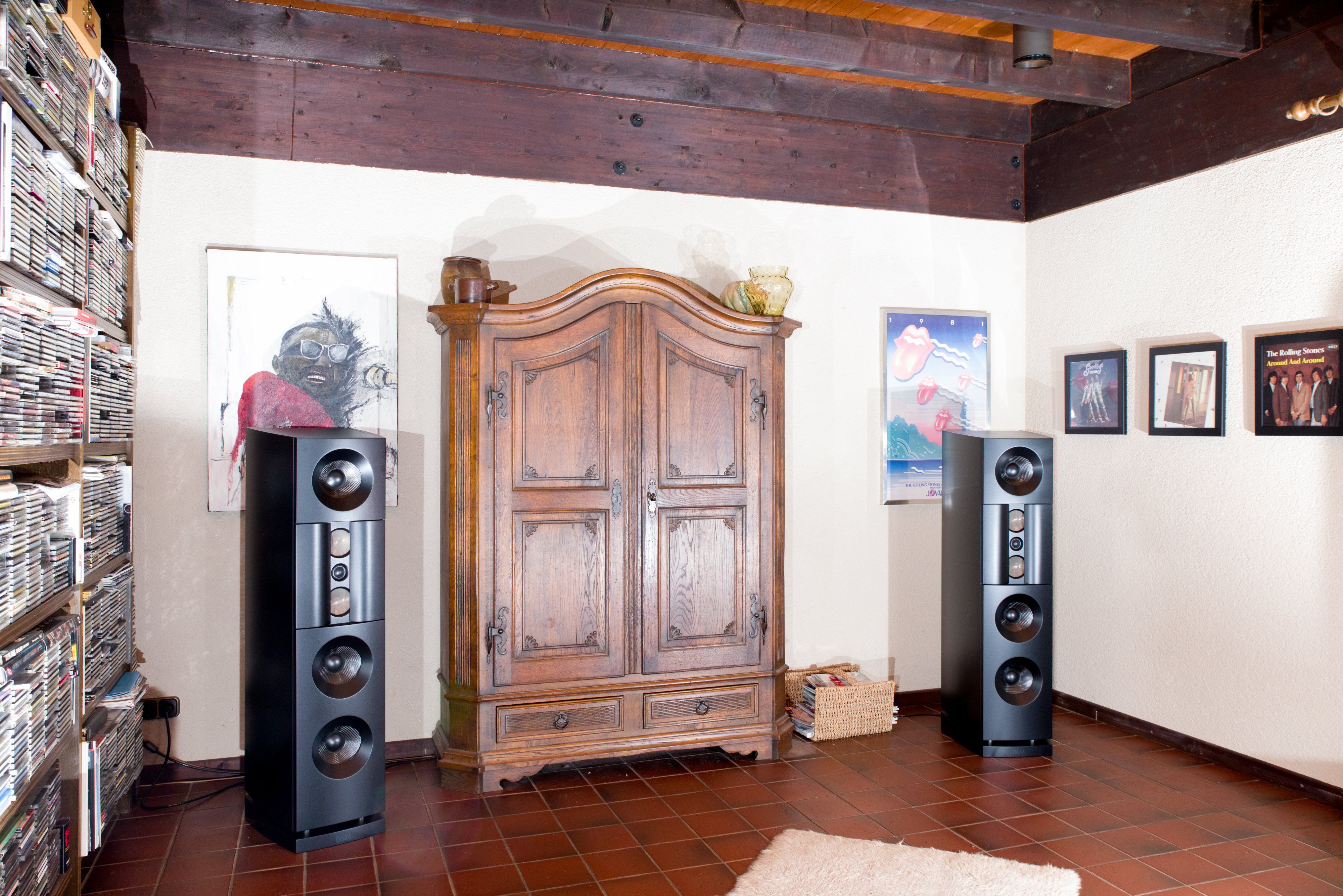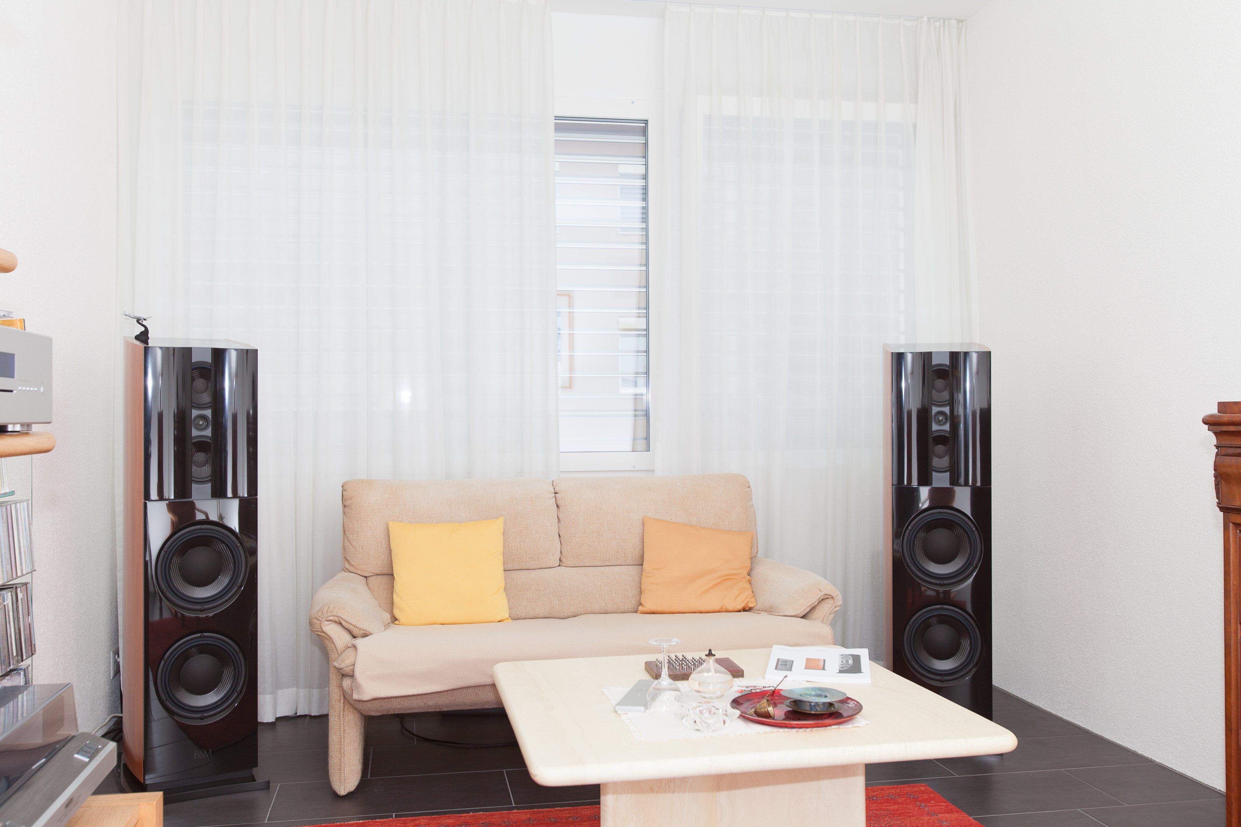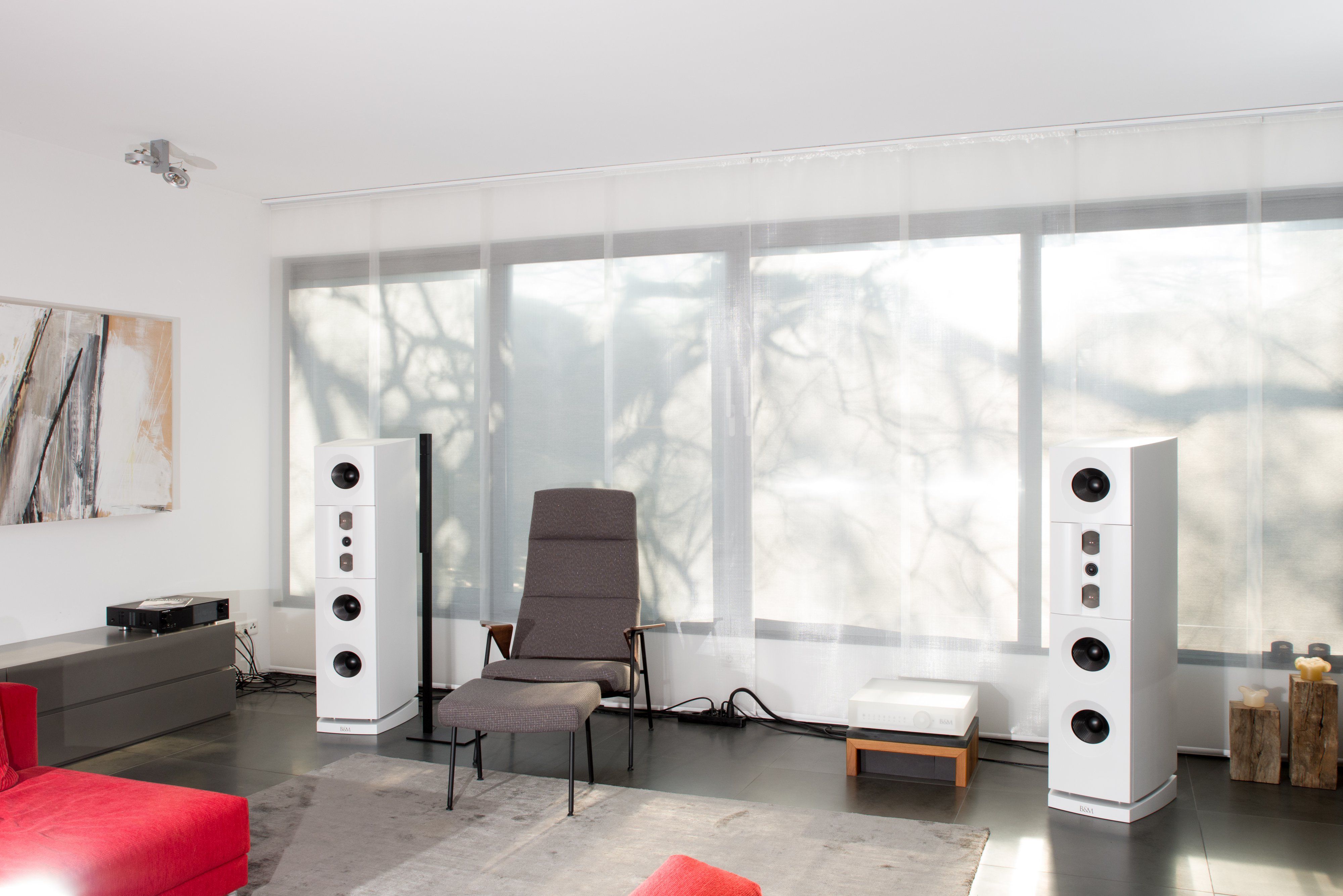 Gibts denn in denen Wohnzimmer keine Raummoden? Doch doch, die sind aber noch nie das Problem gewesen. Spätesten hier merke ich im Gespräch, dass die Skepsis gegenüber den B&M Aktivlautsprechern, ebenfalls vorhanden ist.