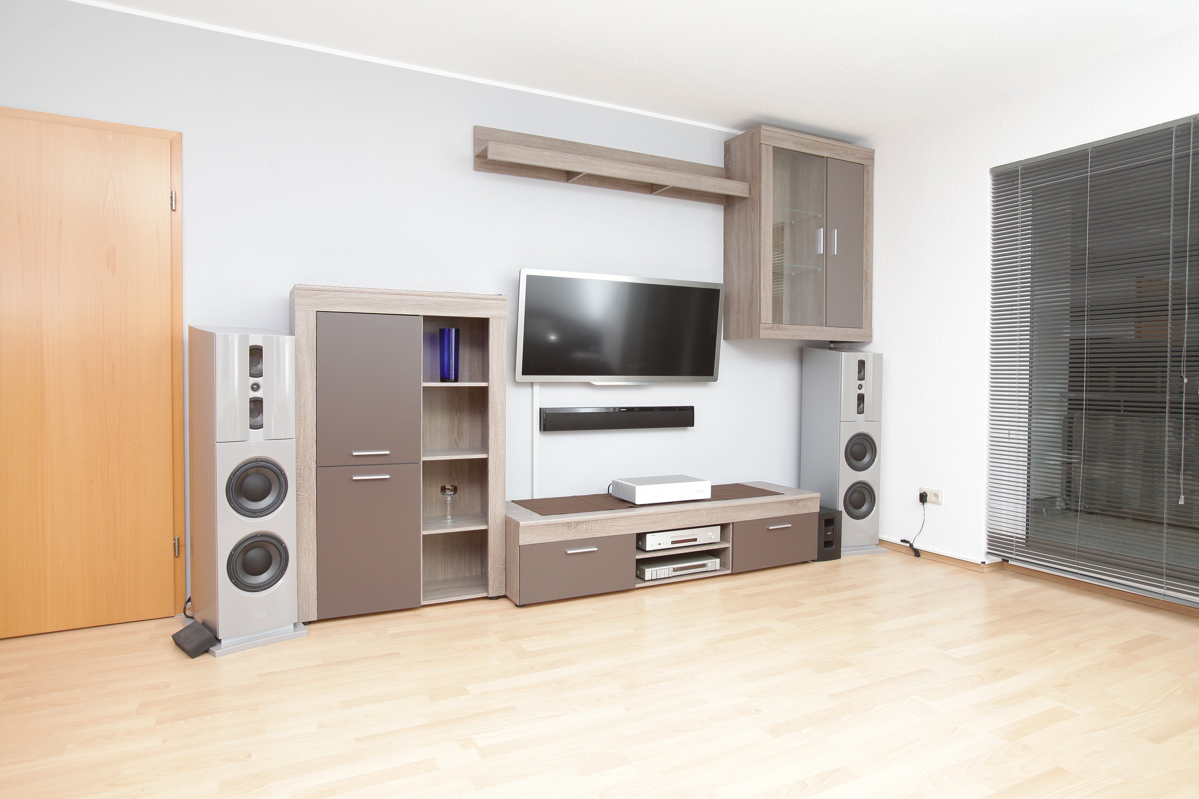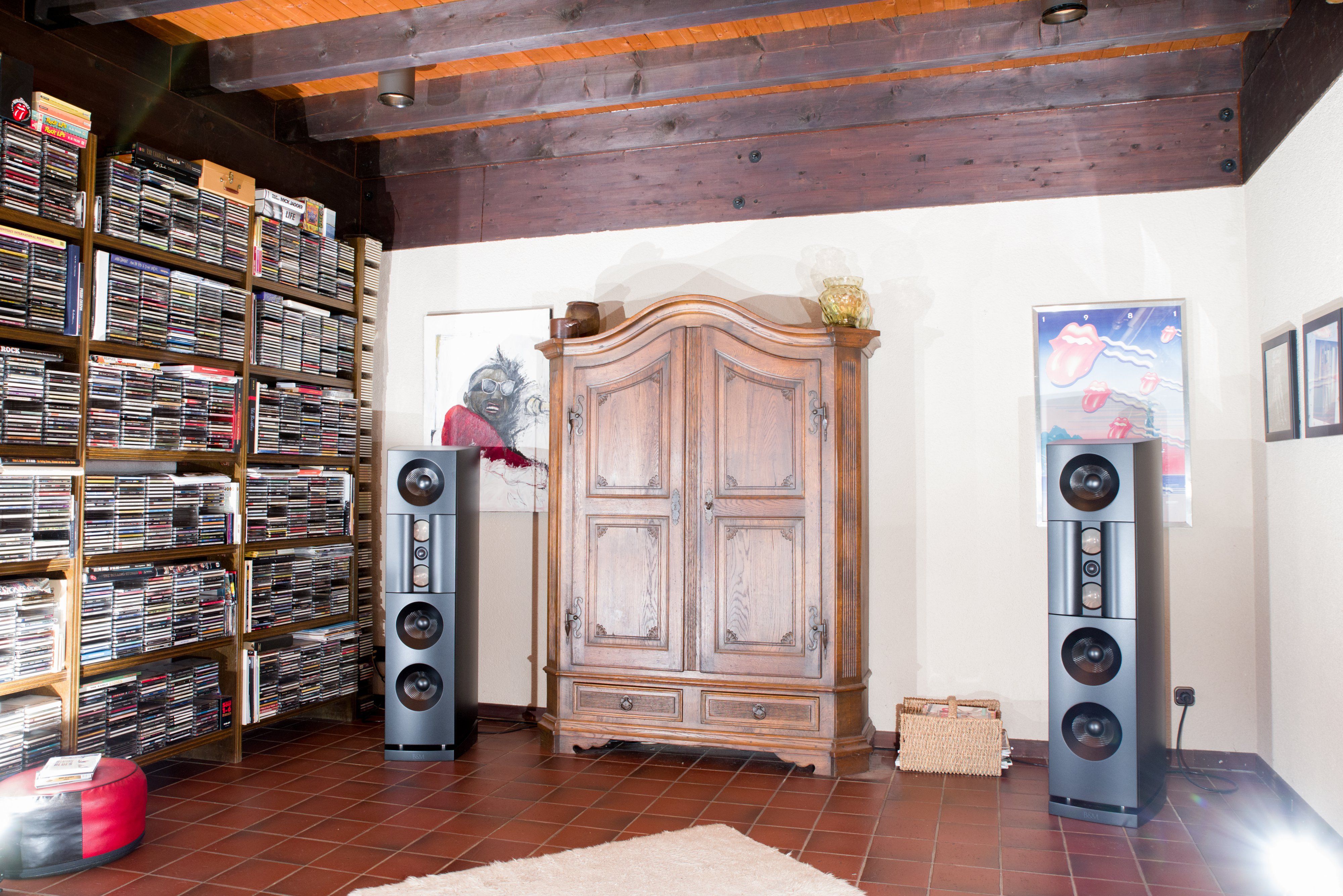 Auch hier handelt es sich um eine Wandaufstellung. Die Lautsprecher werden im Stereobetrieb von unserer BM ICE802 betrieben. Die beide BM Line 15 stehen etwa 3,00m auseinander, der Hörabstand beträgt 3,50m.
