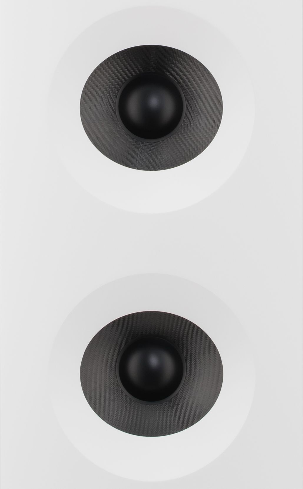 Im Zentrum der beiden Mittelton- Inverskalotten ist der Hochtöner - eine 3cm Seidenkalotte - plaziert.
