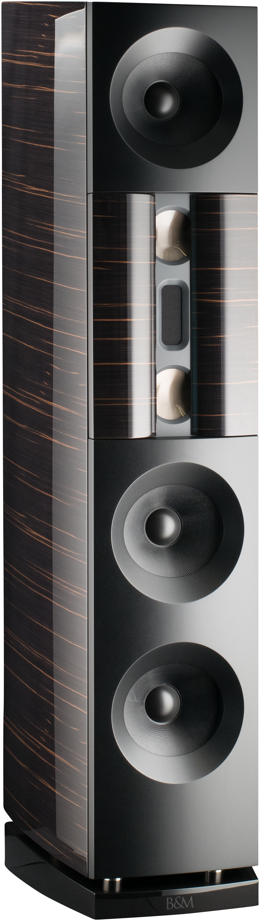 Durch die Positionierung des Hochtöners (im Falle der BM Line 20 ein von B&M gefertigter Bändchentreiber), exakt im Mittelpunkt dieser virtuellen Membranfläche, entsteht ein Coaxial- Lautsprecher, der prinzipbedingt Laufzeitunterschiede beim Verändern der Hörposition im Nahfeld gar nicht erst entstehen lässt.