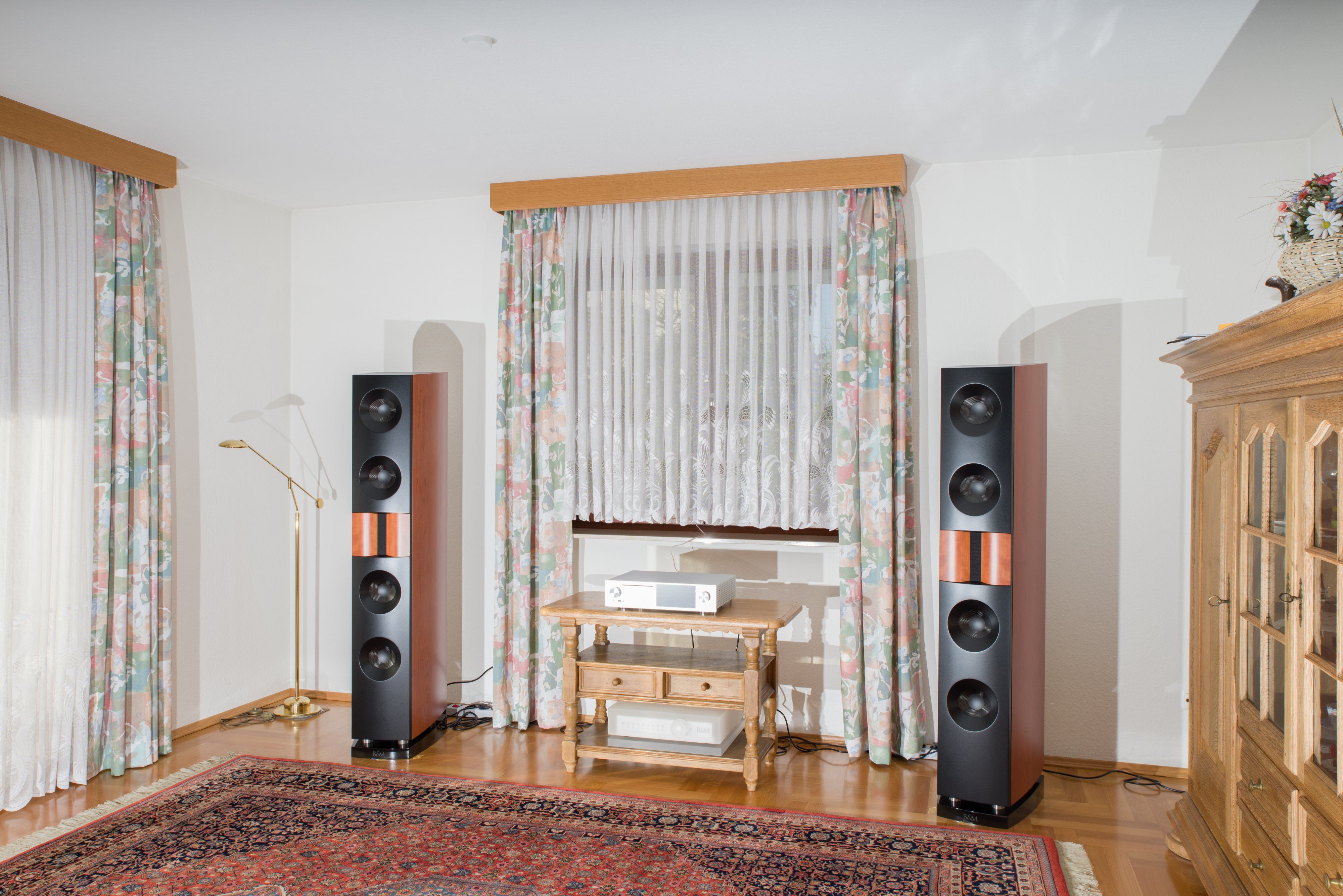 Gibts denn in denen Wohnzimmer keine Raummoden? Doch doch, die sind aber noch nie das Problem gewesen. Spätesten hier merke ich im Gespräch, dass die Skepsis gegenüber den B&M Aktivlautsprechern, ebenfalls vorhanden ist.