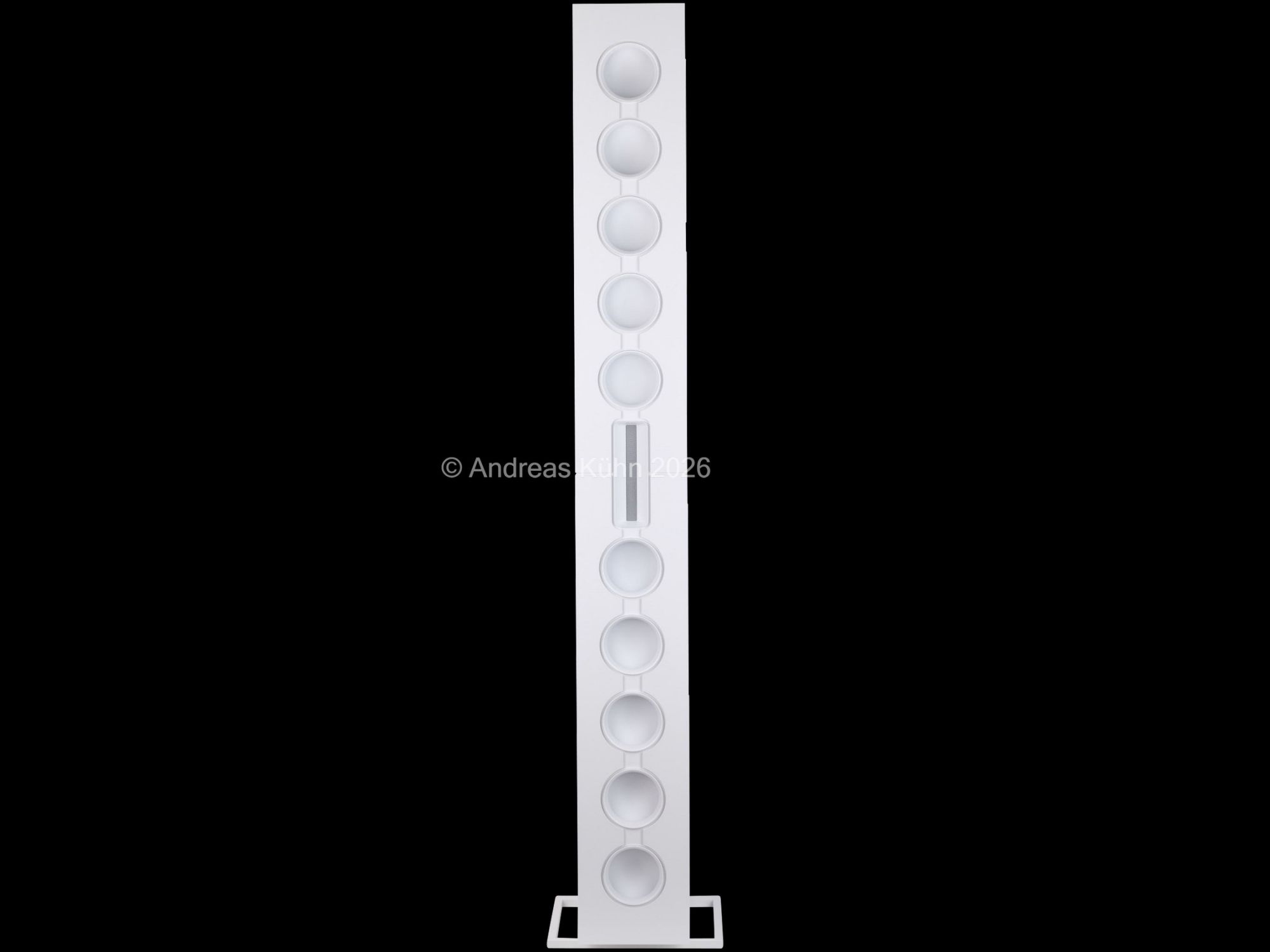Im Mittel-Hochtonbereich kommt der patentierte Fraunhofer-Zylinderwellenstrahler zum Einsatz. Durch seine kontrollierte Abstrahlcharakteristik wird der Schall gezielt auf den Hörbereich gelenkt, während störende Reflexionen von Boden und Decke deutlich reduziert werden. Das Ergebnis ist eine außergewöhnlich stabile Bühne mit hoher Detailauflösung und einem breiten Sweetspot – auch in akustisch anspruchsvollen Räumen.