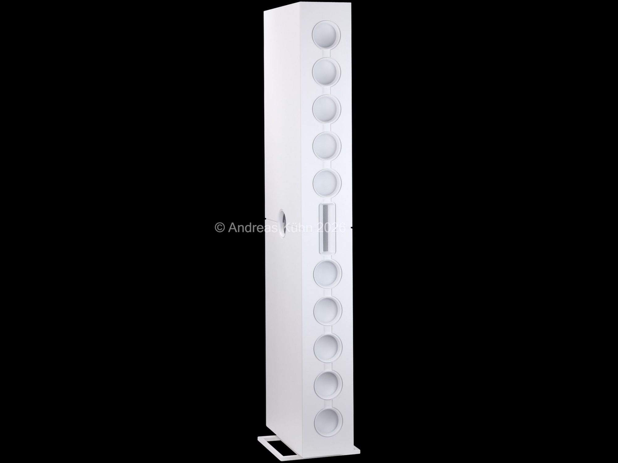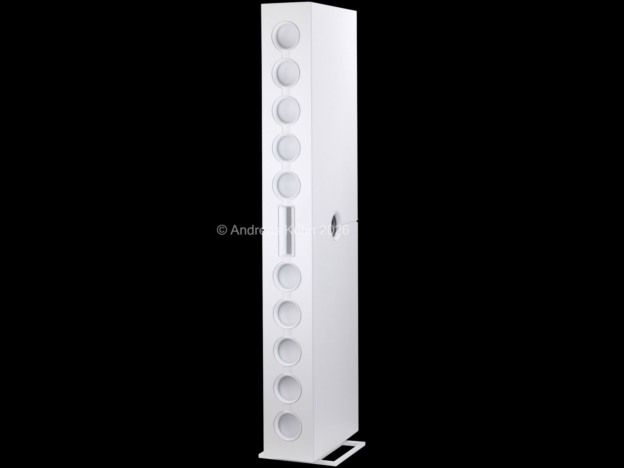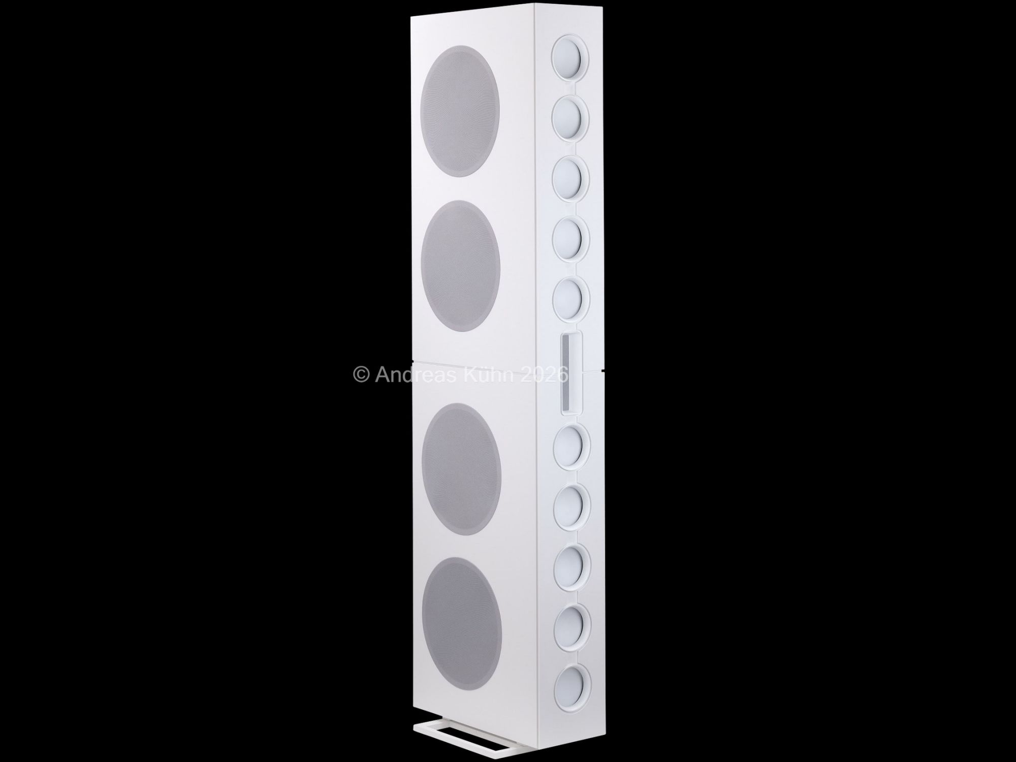 Der Bassbereich wird von mehreren großformatigen, sensorgeregelten Tieftönern übernommen. Die integrierte Regelung überwacht permanent die tatsächliche Membranbewegung und korrigiert sie in Echtzeit. Dadurch bleibt der Bass nicht nur tiefreichend und kraftvoll, sondern vor allem präzise und frei von Aufdickungen, selbst bei hohen Pegeln oder geringer Lautstärke.