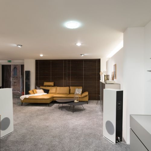Das Design der Jubilés mit der abgeschrägten Schallwand, den eleganten, fugenlosen Gehäusen, mit ihrer schlanken, eleganten Silhouette, die leicht über dem Sockel schwebt, verleiht ihnen eine Einzigartigkeit, die herkömmliche Wohnzimmerlautsprecher weit hinter sich lässt. Durch den optischen Verzicht auf rein technische Lautsprecherelemente wie Sicken, Schrauben oder Ähnliches entsteht ein Klangmöbel, das jedes Wohnambiente bereichert.