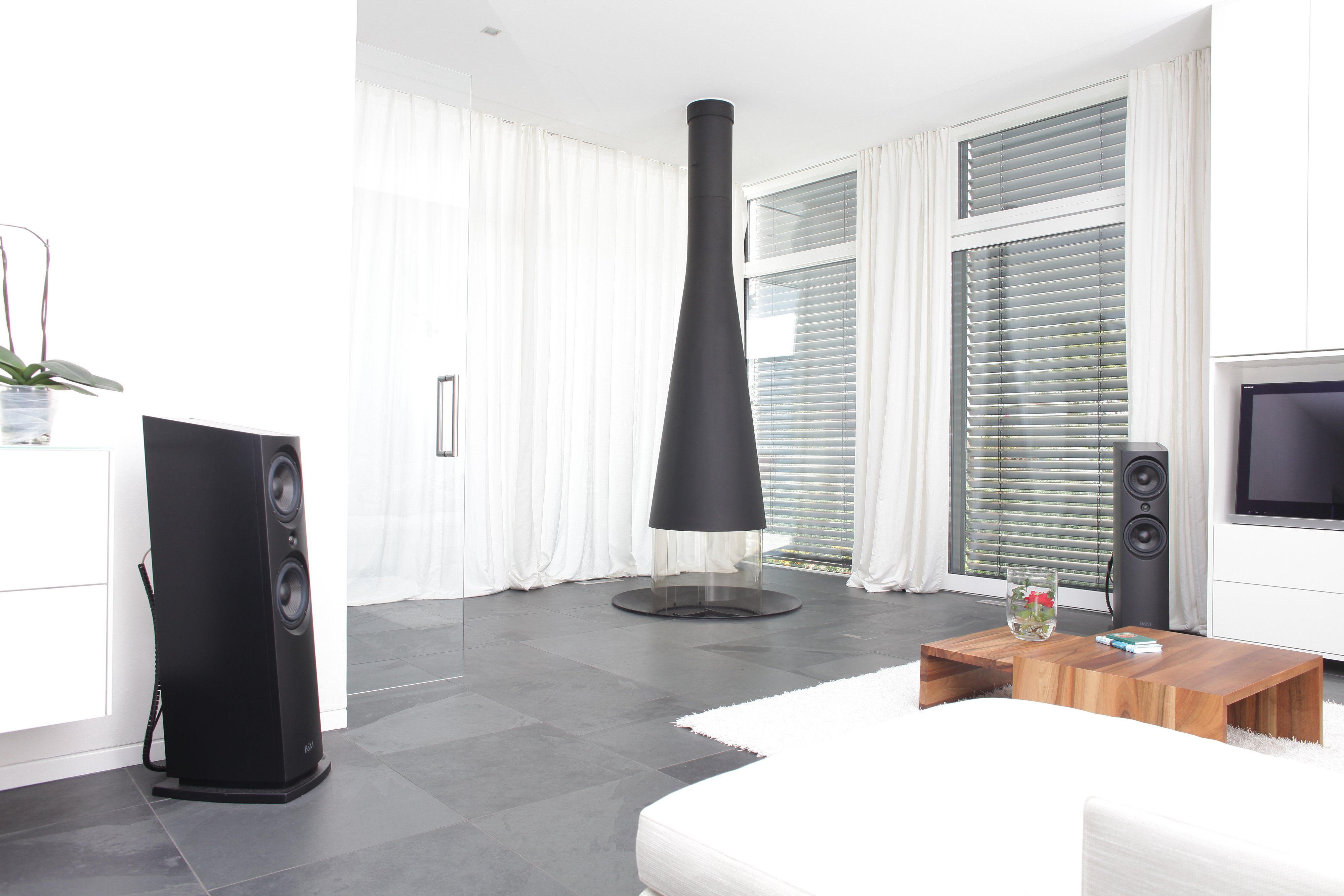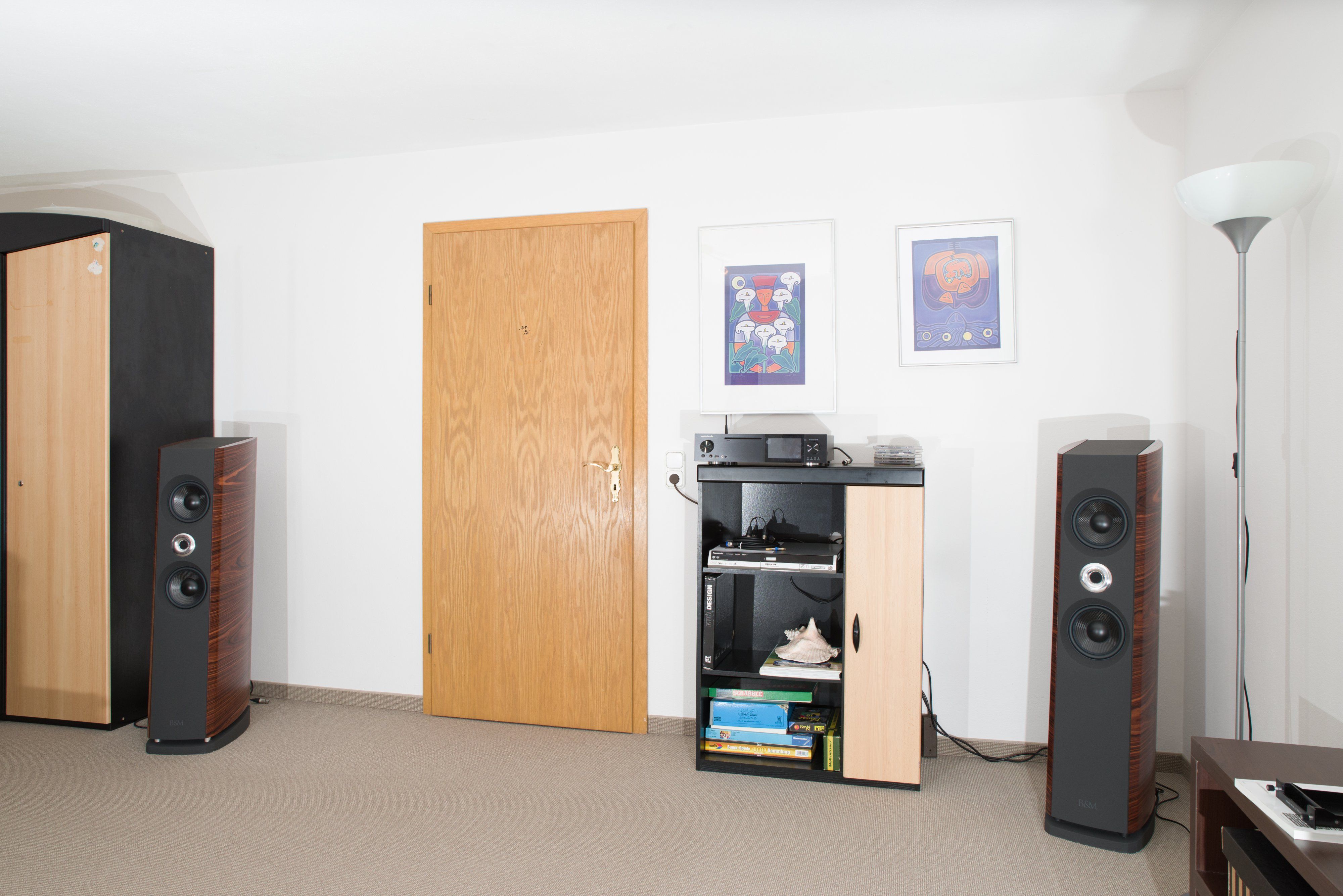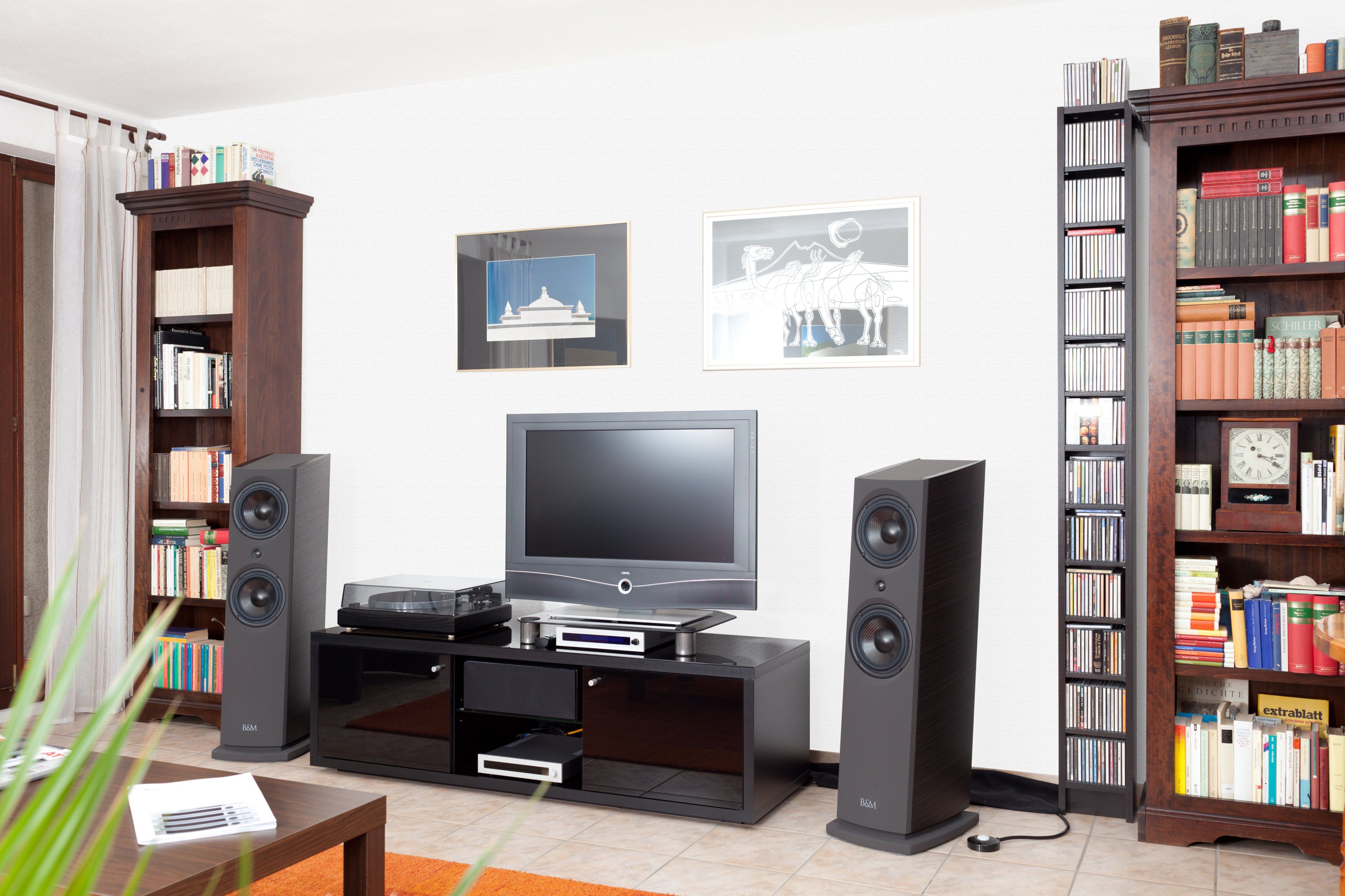 Gibts denn in denen Wohnzimmer keine Raummoden? Doch doch, die sind aber noch nie das Problem gewesen. Spätesten hier merke ich im Gespräch, dass die Skepsis gegenüber den B&M Aktivlautsprechern, ebenfalls vorhanden ist.