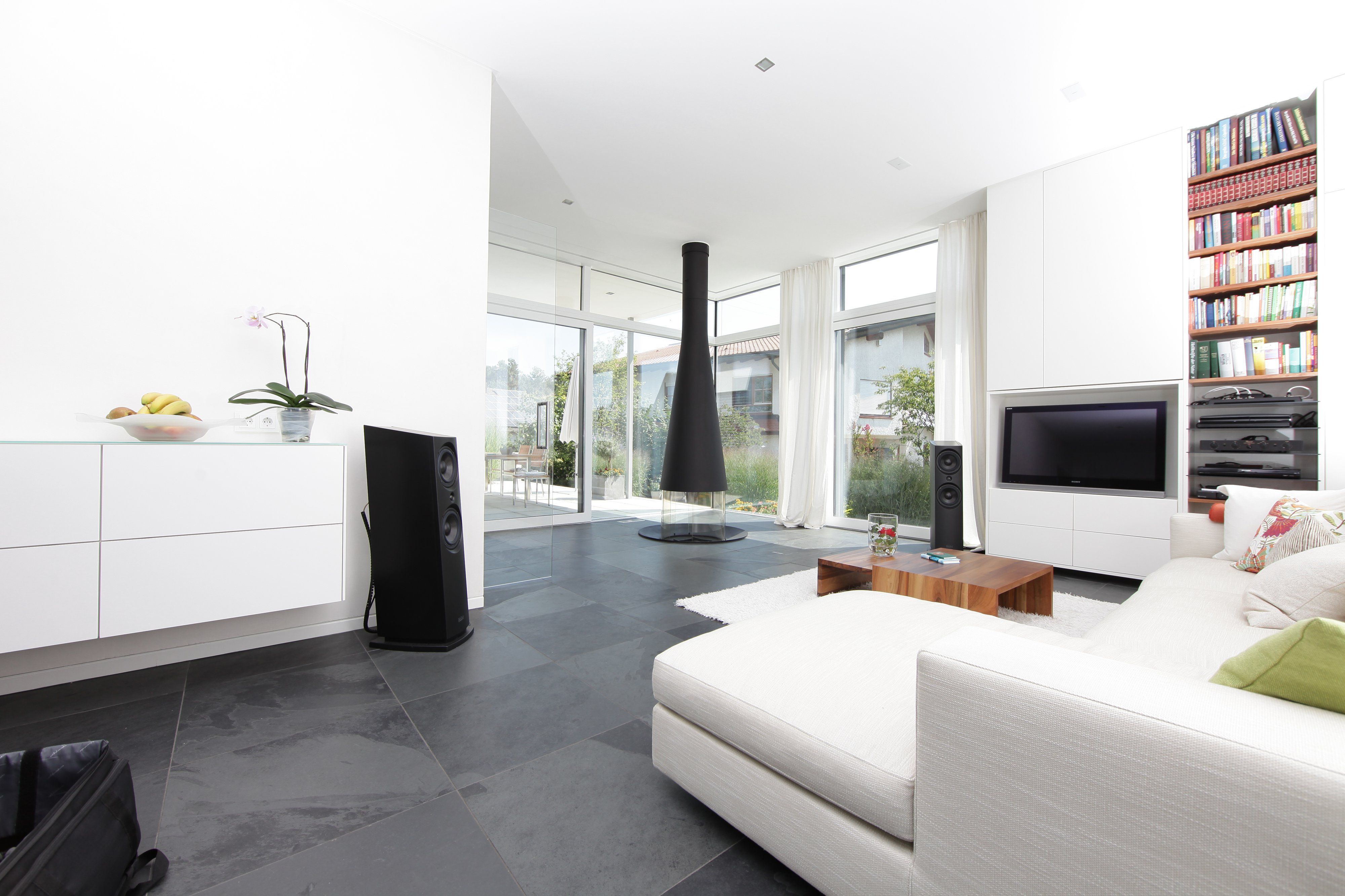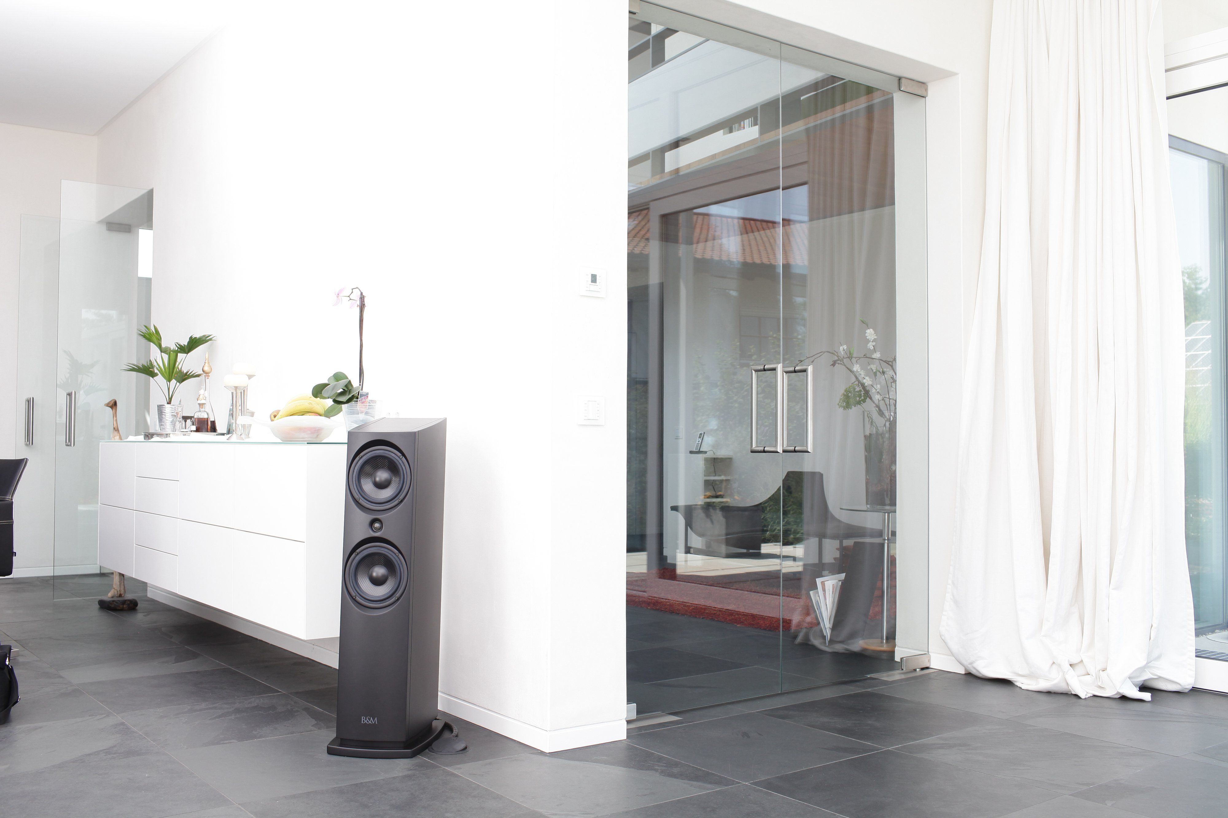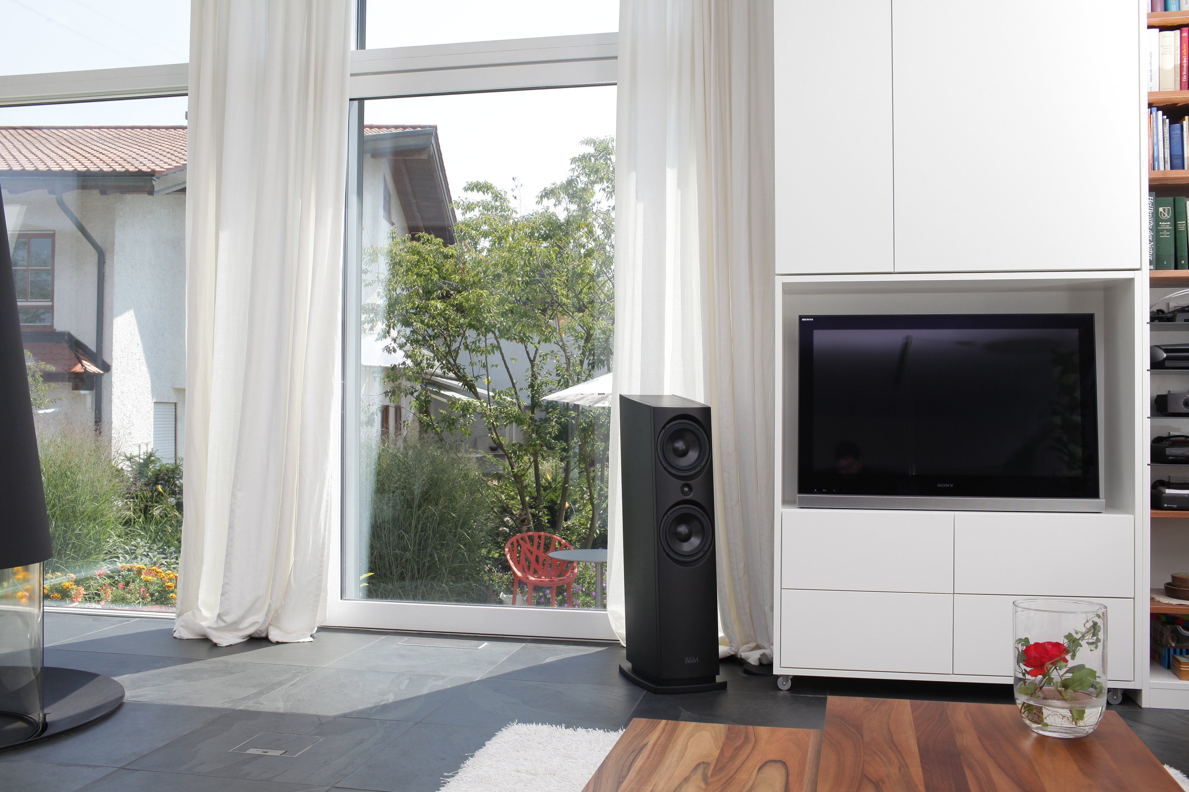 Gibts denn in denen Wohnzimmer keine Raummoden? Doch doch, die sind aber noch nie das Problem gewesen. Spätesten hier merke ich im Gespräch, dass die Skepsis gegenüber den B&M Aktivlautsprechern, ebenfalls vorhanden ist.