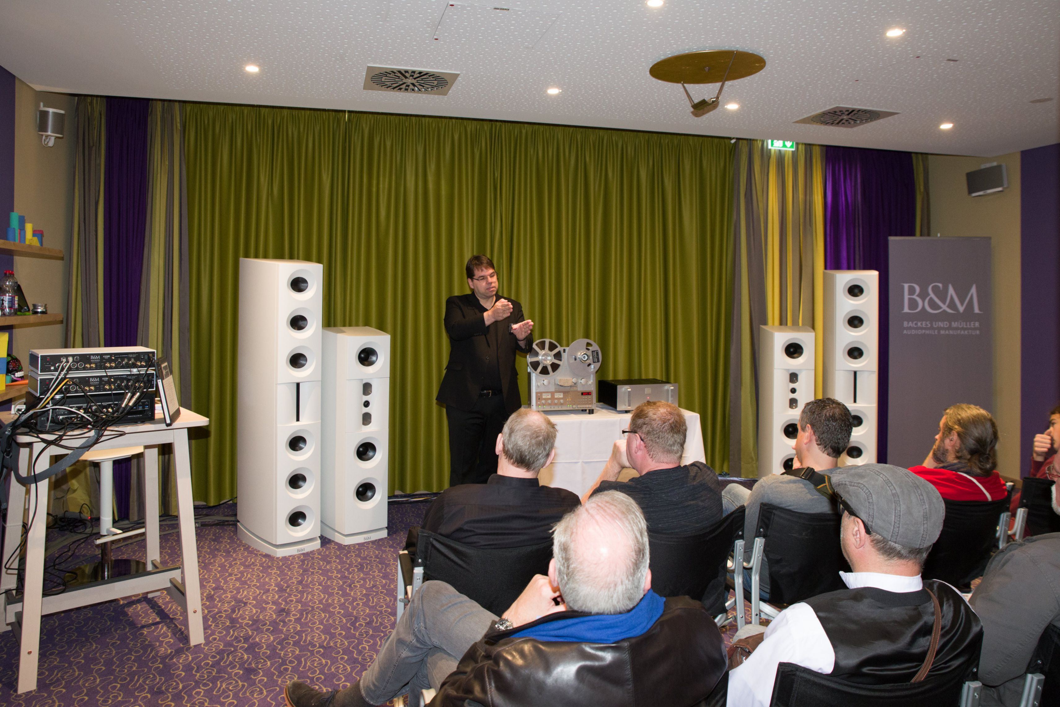 Wie bei jedem Workshops oder wie bei jeder Vorführung die ich präsentiere, finden nach den Musikstücken kurze Erklärungen (also keine Vorträge) statt. Danach gehts wieder weiter mit Musik. Allerdings ist es auch so, daß das Vorführen mit einer Bandmaschine entschleunigt, denn es dauert etwa 2-3 Minuten bis das Band komplett zurückgespult ist.